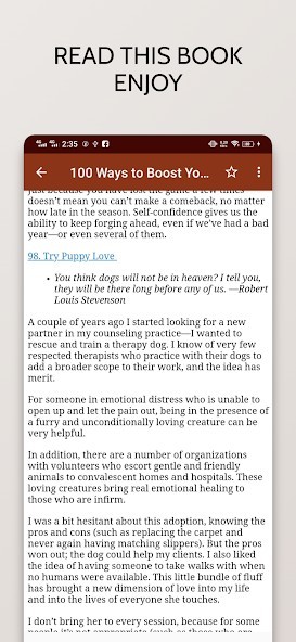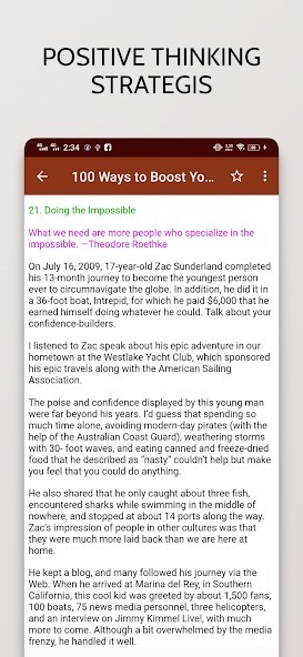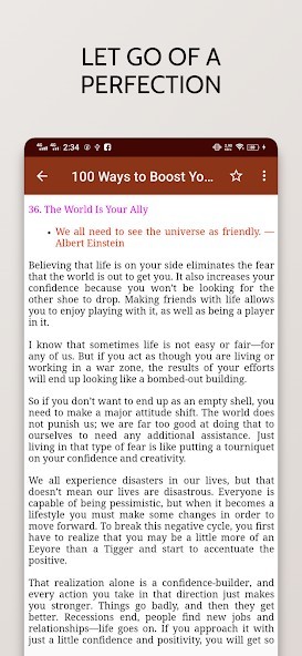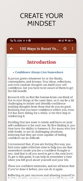 Your ideas, reflections, morals & values, and even random thoughts can build your self-confidence, but you have to be aware of them to get the full benefit. Research tells us that the human brain can think of five to nine things at the same time, so it can be a bit challenging to isolate and identify the confidence-building thoughts from those that do you no good.This Boost Your Self Confidence app is a real self-confidence booster in real life. In self-confidence challenge, you have to know the best way of self-confidence exercise through self-confidence meditation. This self-confidence app offline is not a self-confidence quotes app or self-confidence stories app but it is a real guideline of 100 ways to build up self-confidence.