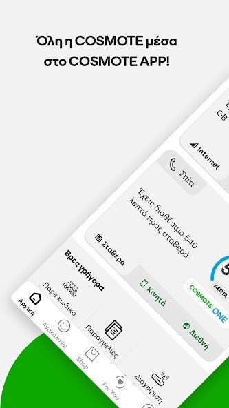 Packages, services, new programs and offers for each of your connections - mobile, landline and TV. In addition, you can get COSMOTE TV, to enjoy your favorite program, when you want, without any commitment