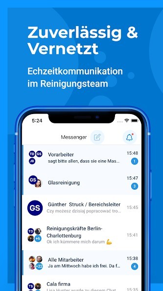 Chat function with photo and video documentation - as easy as What's App. Enables communication at area and task level to the assigned cleaner within their working hours. The mobile interaction between the participants is thus GDPR-compliant.