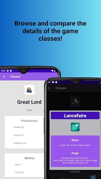 Read the support conversations between characters, check the right answers during Tea Time, compare the stats and growth rates for different classes and characters, find their liked items, and much more!Main features: