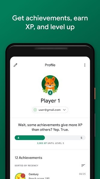 • Gamer profile: Create a custom gamer ID, unlock achievements, earn XP, and level up.