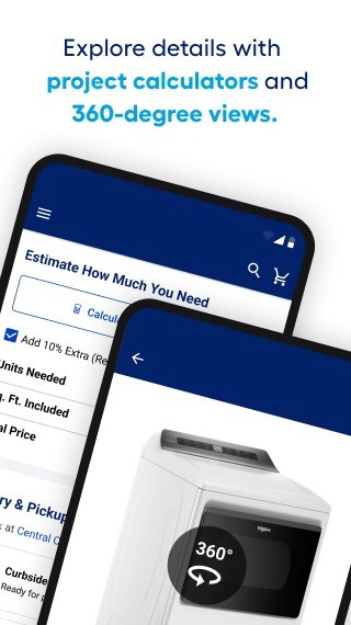 Whether you’re a Pro or a have a DIY project on your mind, you can search and shop thousands of products like kitchen appliances, paint, lumber, tools, outdoor power equipment, grills, outdoor furniture, flooring and more— anytime when you’re on the go. We’ve also included larger, zoomable images and 360° spins so you can see every last detail.WHAT YOU NEED- FASTER